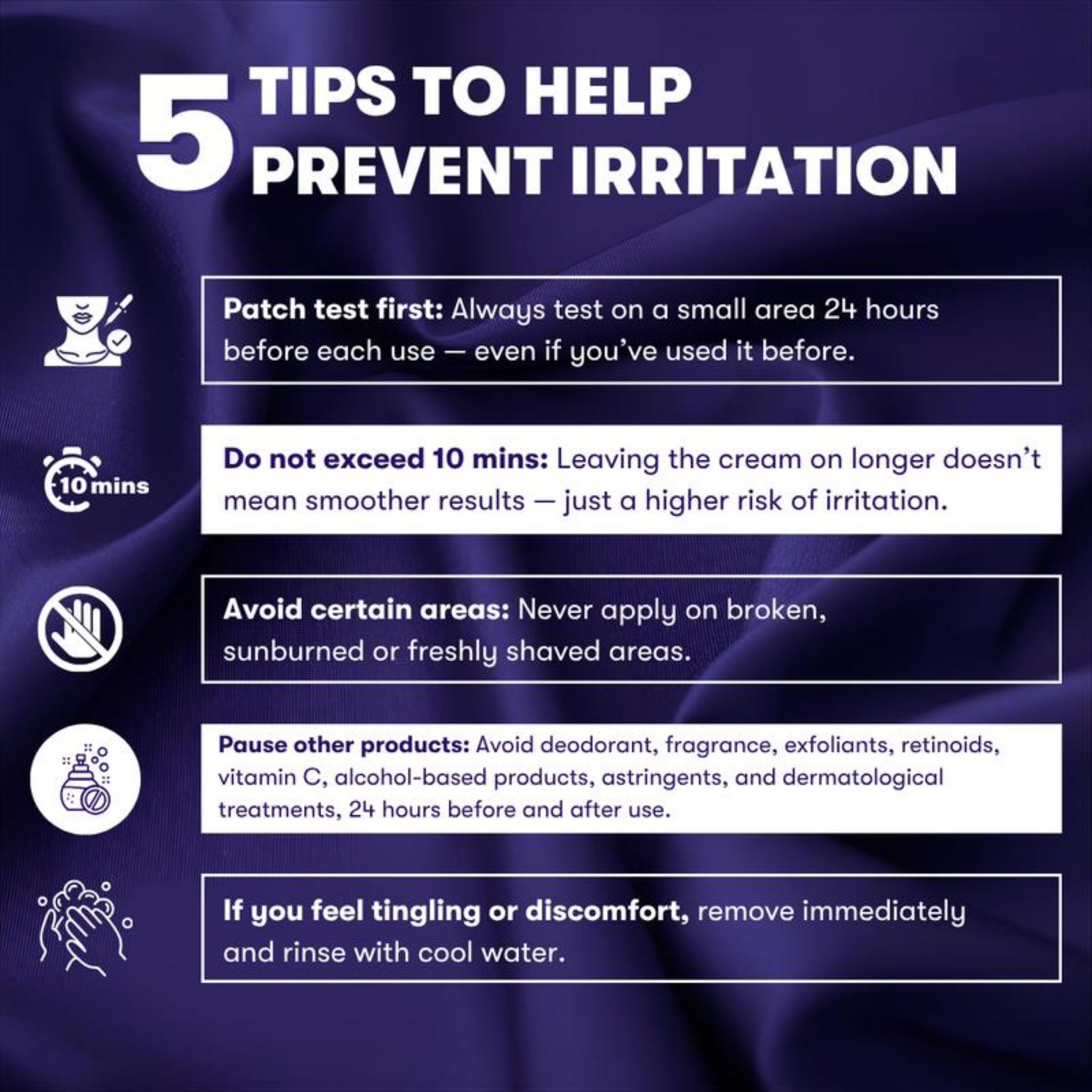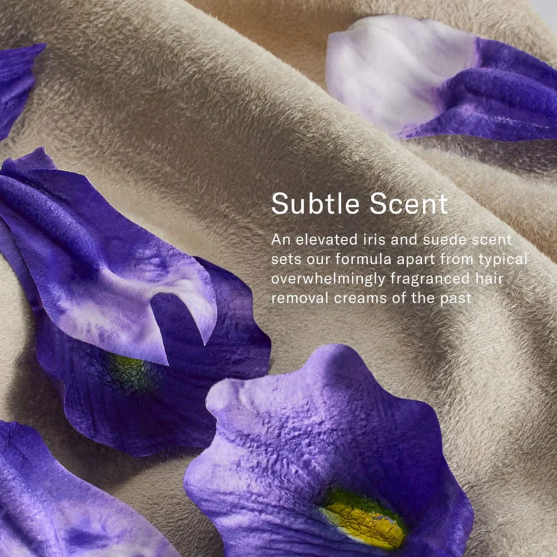 No parabens, mineral oils, or harsh alcohols. Just a clean, iris-scented formula designed to remove hair effectively while keeping your skin comfortable, balanced, and nourished.